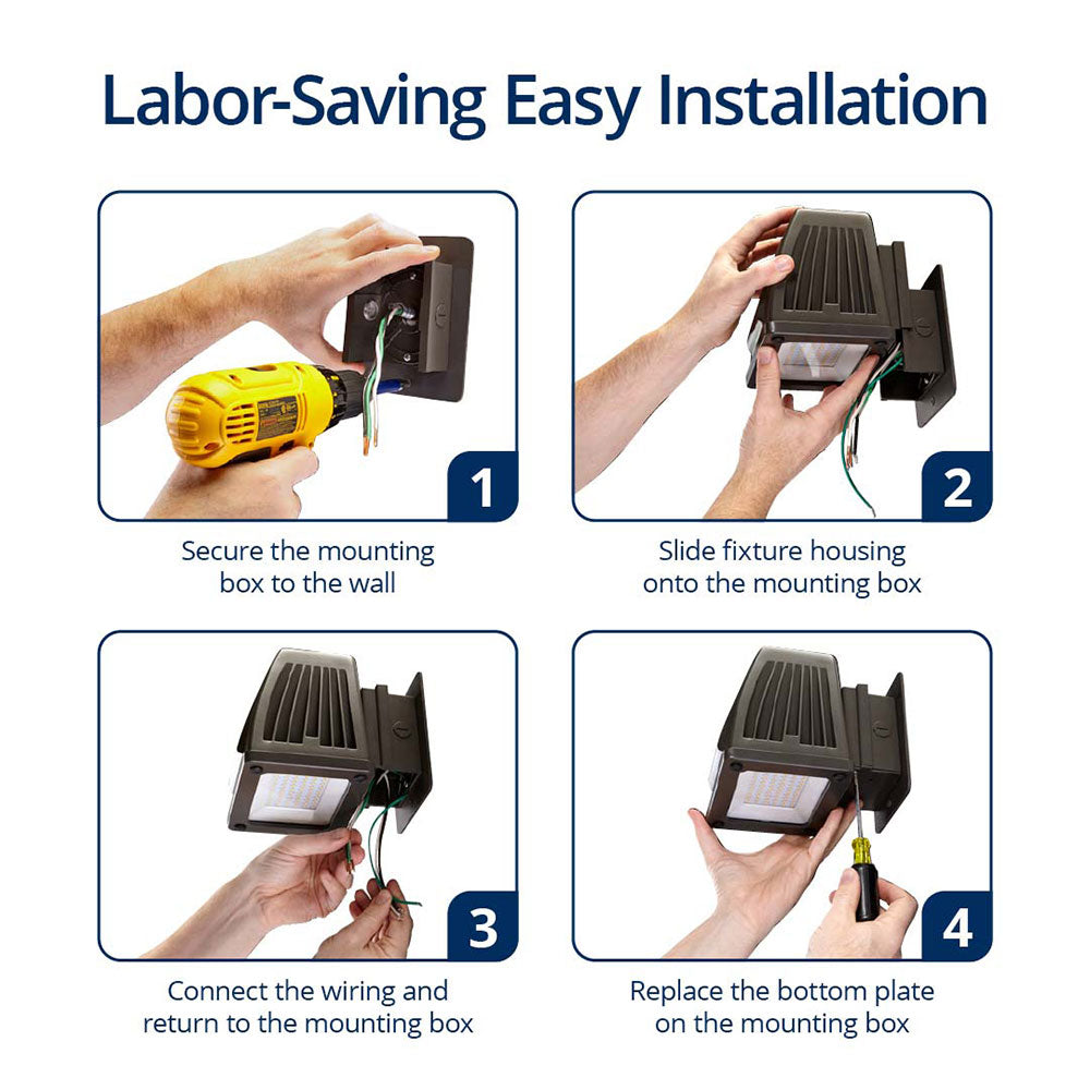 The Atlas Wall Pak Pro features a patented, labor-saving design that is quick and easy to install. These energy-efficient wall lights are available in 3 housing sizes and produce a smooth, glare-free light pattern. Made of 100% aluminum, they retain a familiar architectural form that maximizes heat dissipation using external airflow fins, prolonging LED and driver life.
